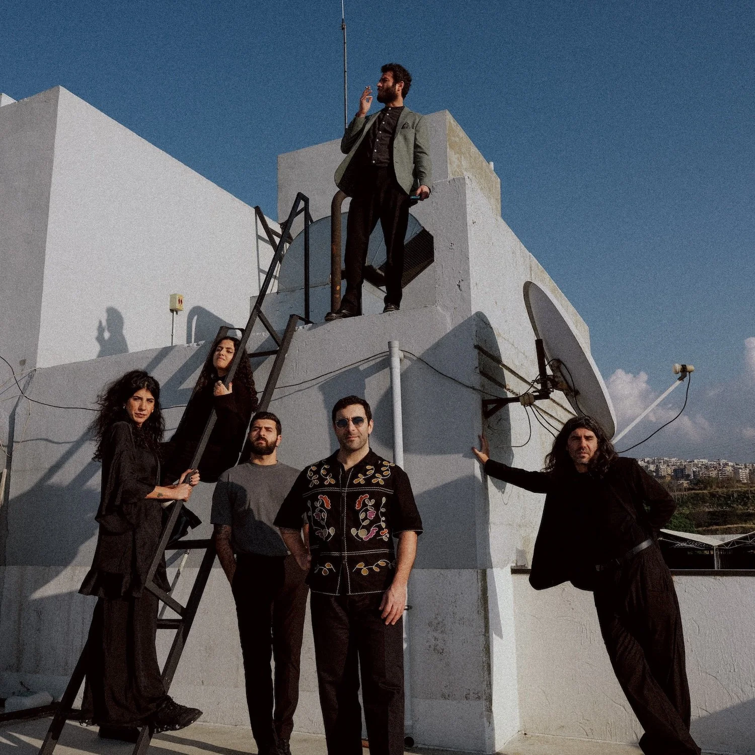 SANAM is a Beirut-based six-piece forging a bold, widescreen sound that blends psych, krautrock, free improv, skronk, electronics, goth, and jazz with traditional Egyptian music and modern Arabic poetry. Drawing from Lebanon’s vital independent music scene, the band features Sandy Chamoun (vocals), Antonio Hajj (bass), Farah Kaddour (buzuq), Anthony Sahyoun (guitar, synth), Pascal Semerdjian (drums), and Marwan Tohme (guitars)—musicians deeply connected to projects like Kinematik, Postcards, Al Rahel al Kabir, and Oviid.